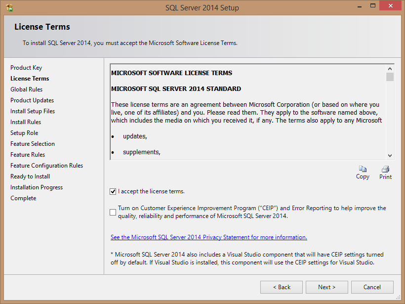 Have you tried the latest SQL Server 2014? I have. I have put together the installation wizard screen shots that I captured while installing my copy.