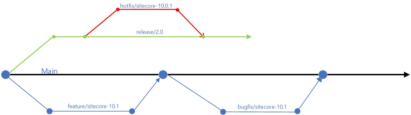 - use of release branches off main branch when close to your release, at end of your sprint or cycle. Make use of bugfix branches for any bugs fixes in your release and merge them back to release branch