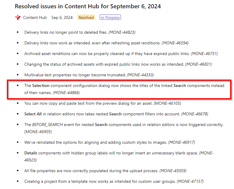 The reference of the bug report is the following: MONE-44866, which can be further reviewed and followed-up via the support portal in the “My Product Issue” page