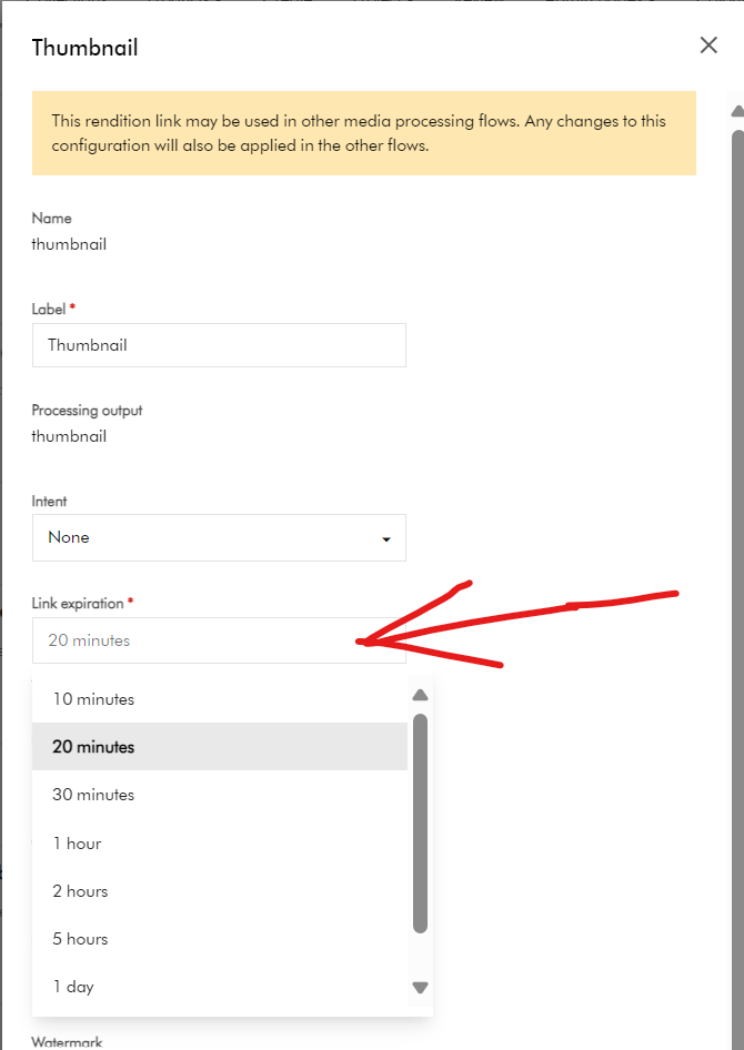 The good news is that this expiry duration is configurable within Content Hub. This behavior is related to the media processing task. When a media processing task is created, it is possible to enable the store output functionality and configure rendition links for these tasks with the needed parameters.