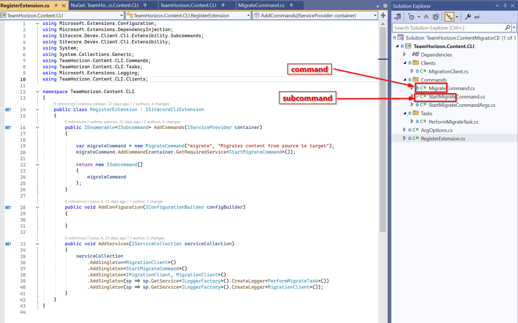 2. StartMigrateCommand.cs – this is the class code file that adds my start subcommand to migrate command