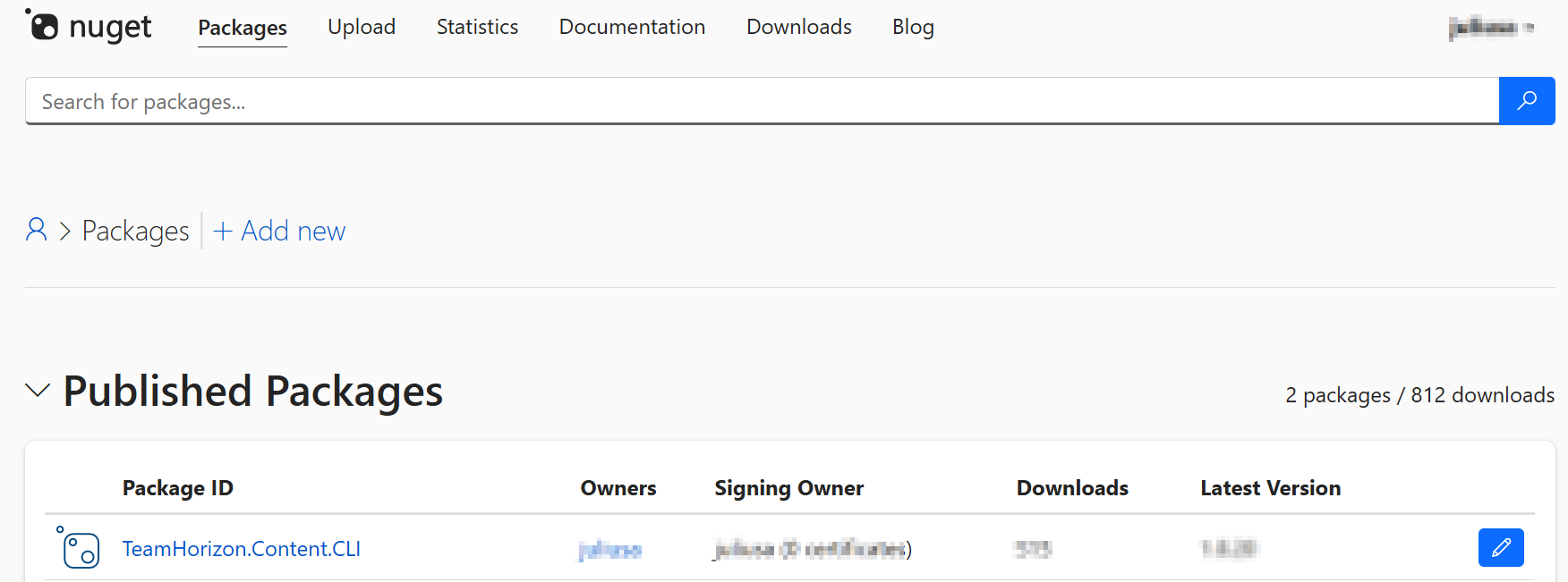 When successful, you can view the list of your published packages using the ‘Manage Packages’ in step 3 on the previous screenshot. You should see the package listed such as shown below