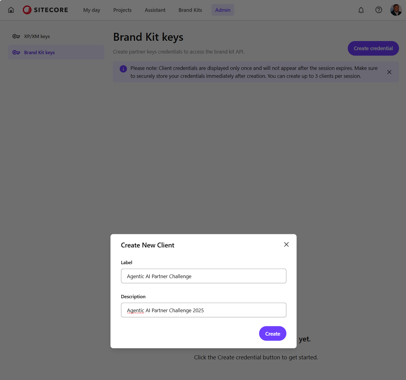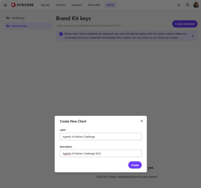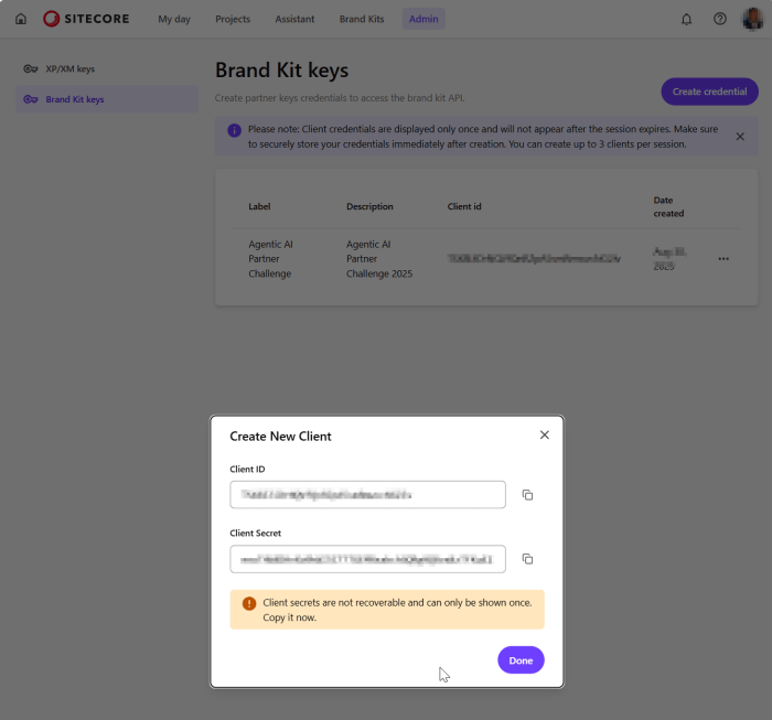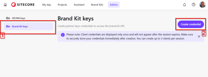 a) From your Sitecore Stream portal navigate to the the Admin page and then navigate to Brand Kit Keys section, as shown below.