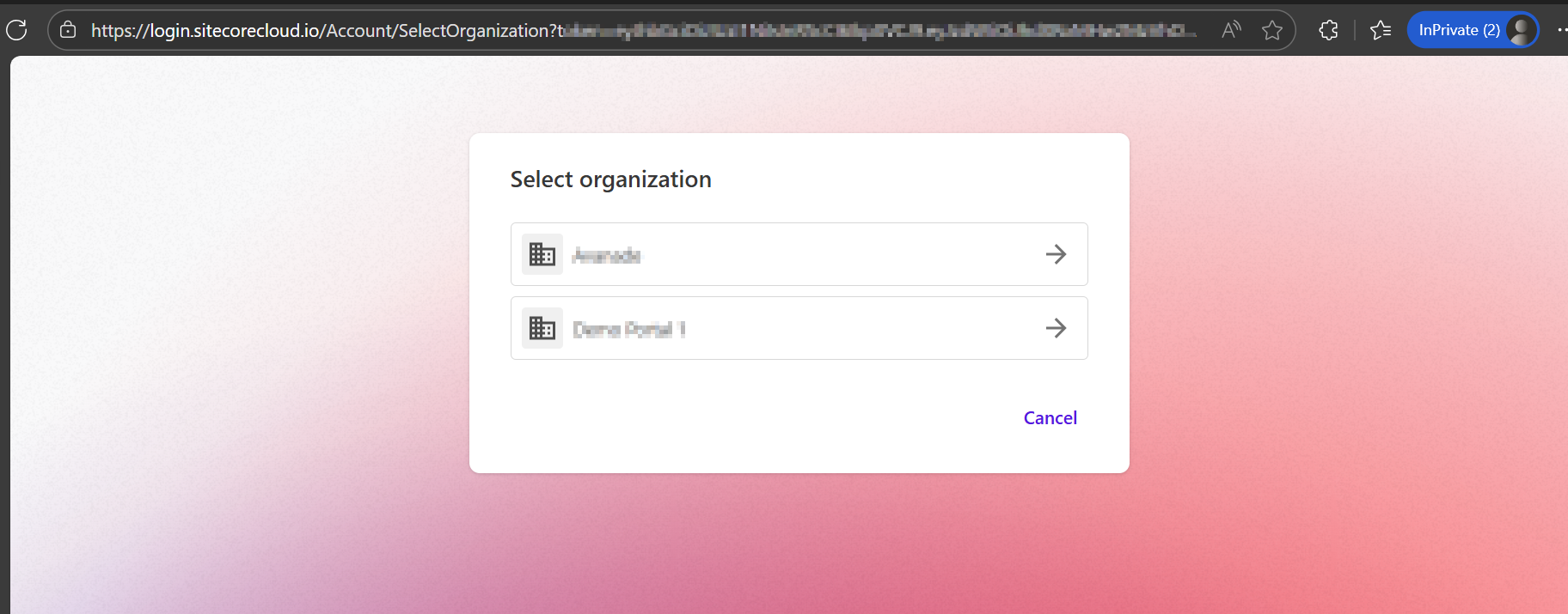 • Then select the organization and tenant you want to use when interacting with the MCP server (as per screenshot below)