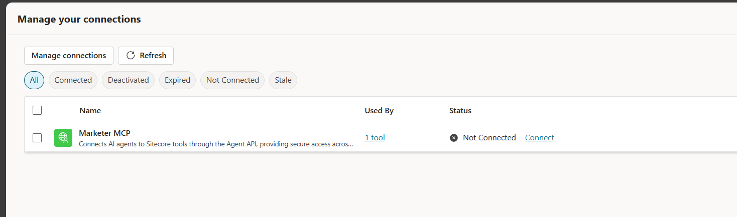 As you may be aware, the Marketer MCP now has a capability to integrate with Microsoft Copilot studio. You can now connect your Microsoft Copilot Studio agents to the Sitecore Marketer MCP for seamless access to Sitecore’s marketing features.