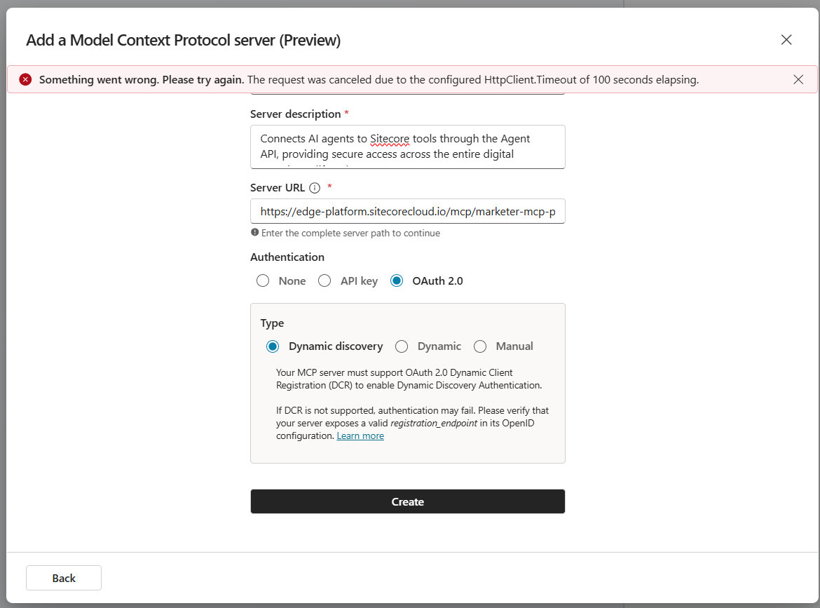 You may come across some issues when establishing the connectivity into Marketer MCP from Copilot Studio. Below are the issues I encountered and how I resolved them.