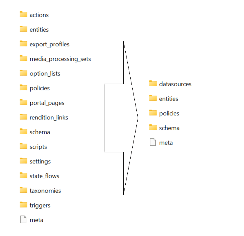 Instead of separate folders like portal_pages, media_processing_sets, or option_lists, the new export engine places files according to their resource type.