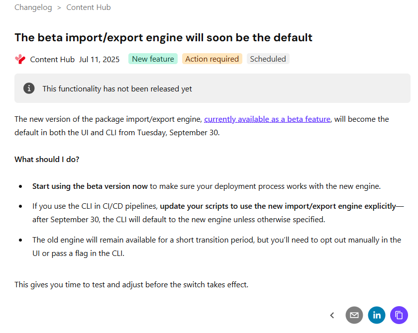 In this blog post, I will look into details what breaking changes were introduced and how to re-align your existing CICD pipelines to work with the new import/export engine.