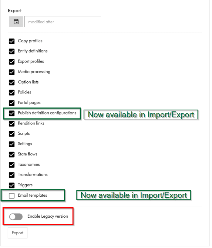 - Import/Export v2 now excludes