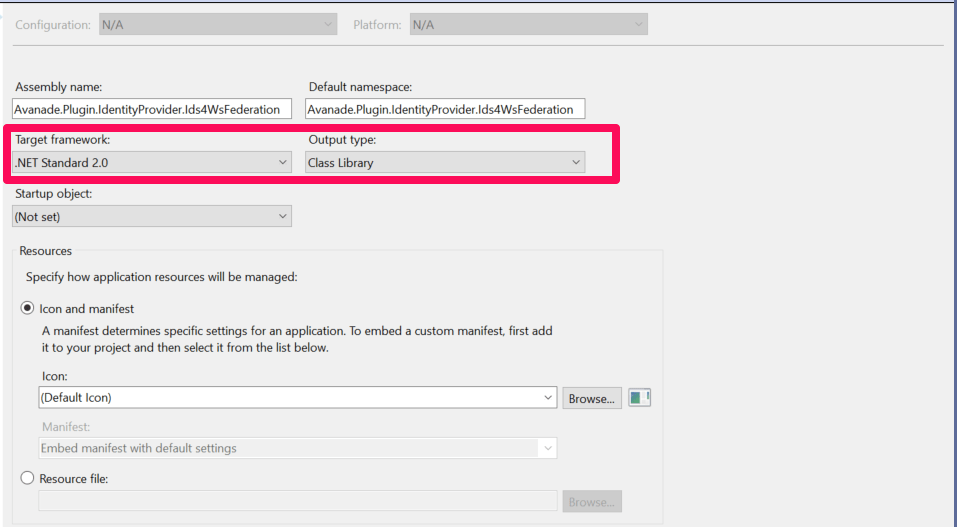 Select the highlighted template and then assign the project a uniquely identifiable name (this will be the plugin unique name). After you have successfully created your project, it is time to verify the Target Framework has been set correctly. This can be done by viewing the project properties as shown below.