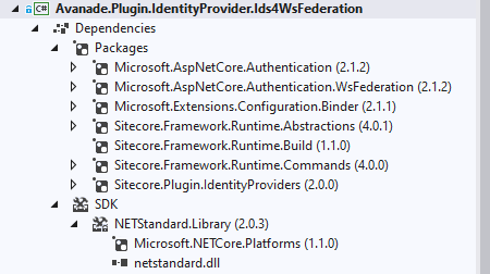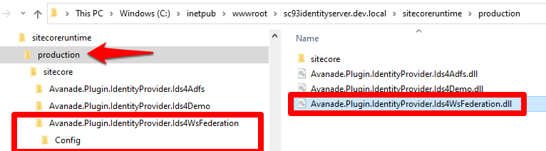 Copy the contents of the Nuget sitecore folder to the plugin folder you created previously (for example, sitecoreruntime/production/sitecore/Avanade.Plugin.IdentityProvider.Ids4WsFederation).