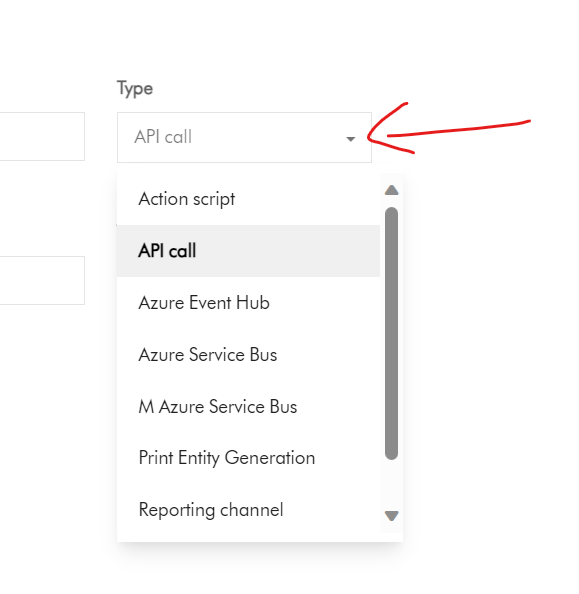 - Type: Select API call from the Type dropdown list, similar to one shown below