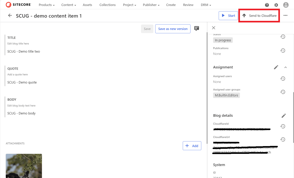 As I demonstrated in my YouTube video – 1 Cloudflare Stream connector demo, I am triggering the API call using a custom button. In my use case, I have added this button to the Blog details page. Clicking on ‘Send to Cloudflare’ button, will trigger the local Func app.