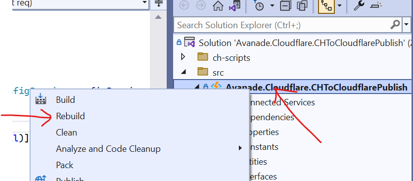 Then you need to build your Visual Studio project and ensure you have no Build errors. You can do this using Build -> Rebuild solution option. Alternatively, right-click on your project, and select Rebuild