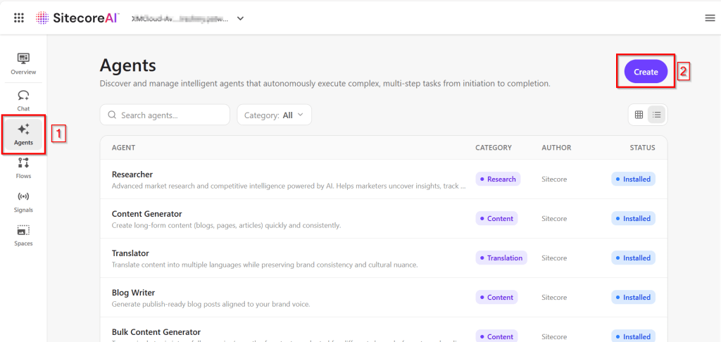 Please note you need a “Builder licence” within SitecoreAI to create new Agents.