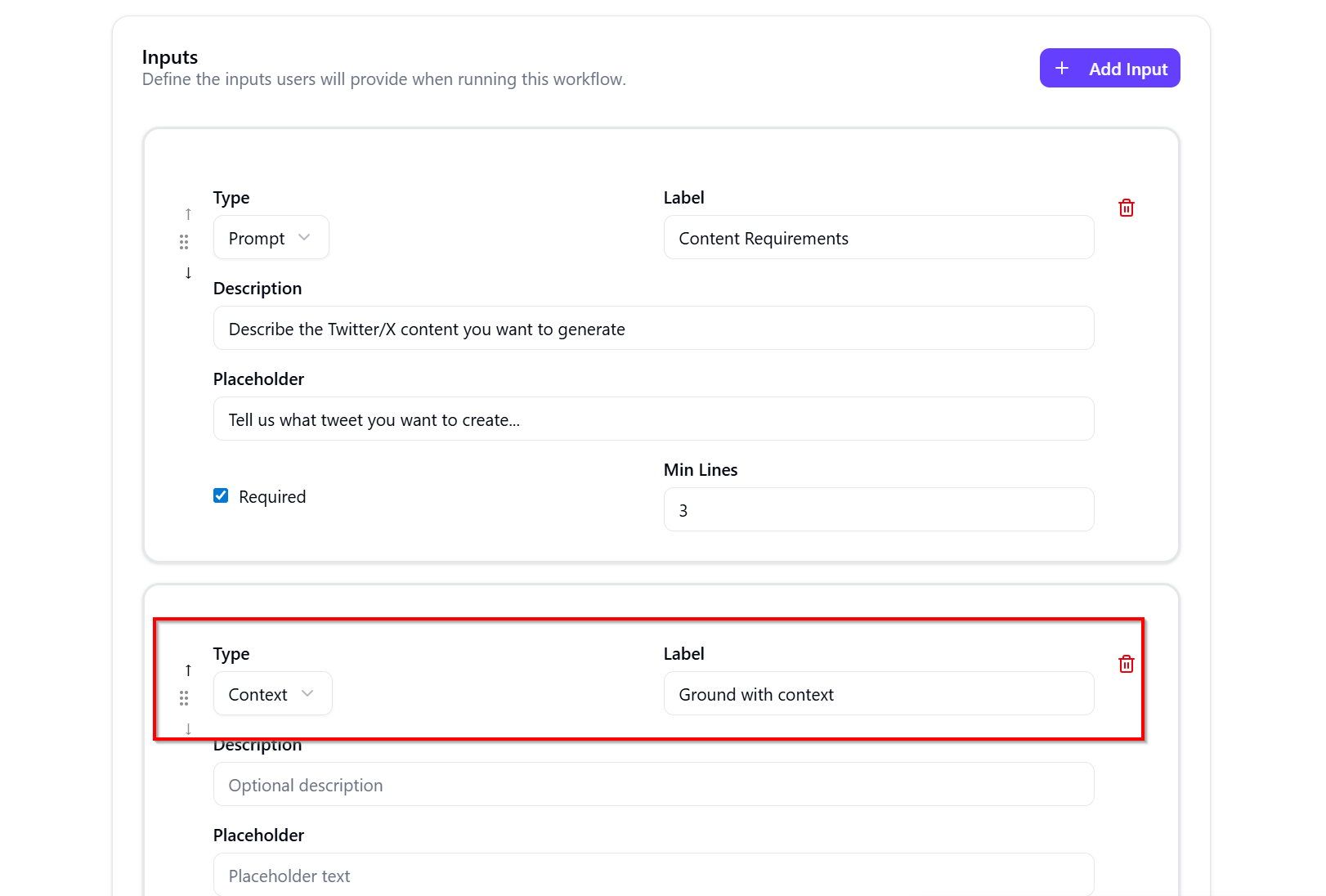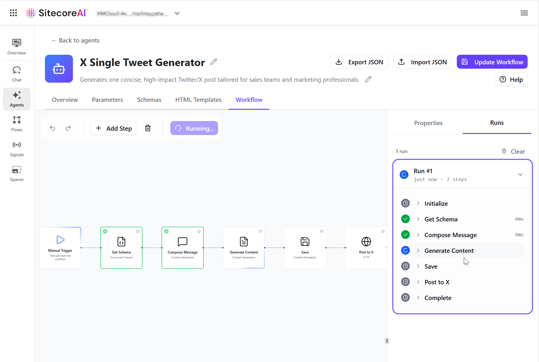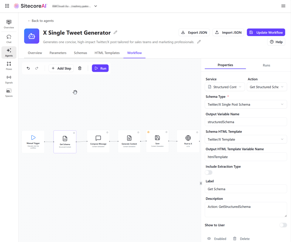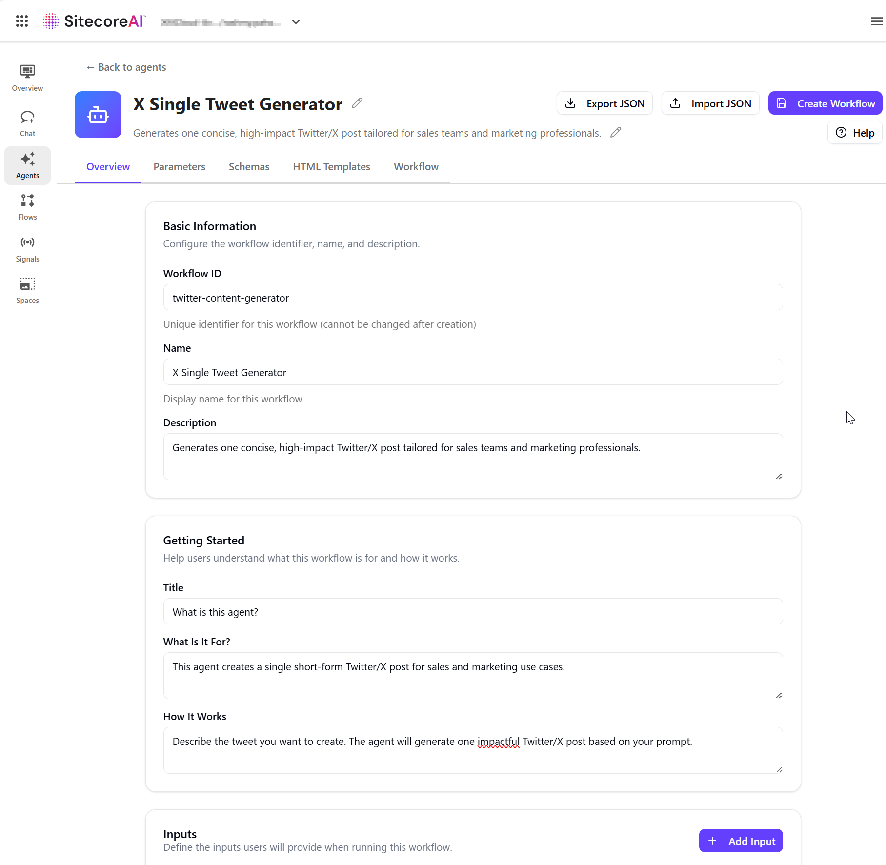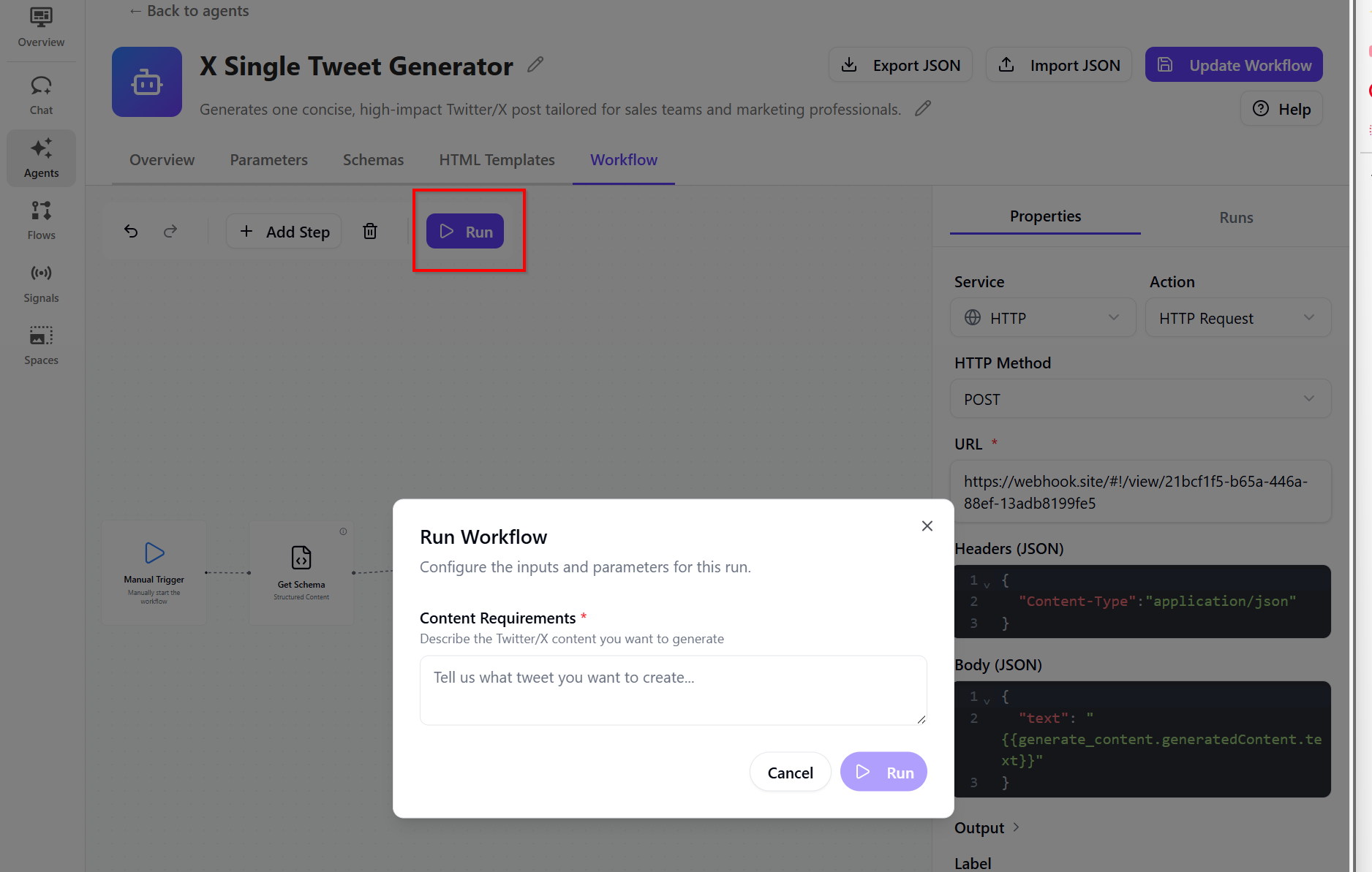 Below we are going to create an X/Twitter Single Tweet Generator, a workflow agent that you can leverage to post on your X/Twitter.