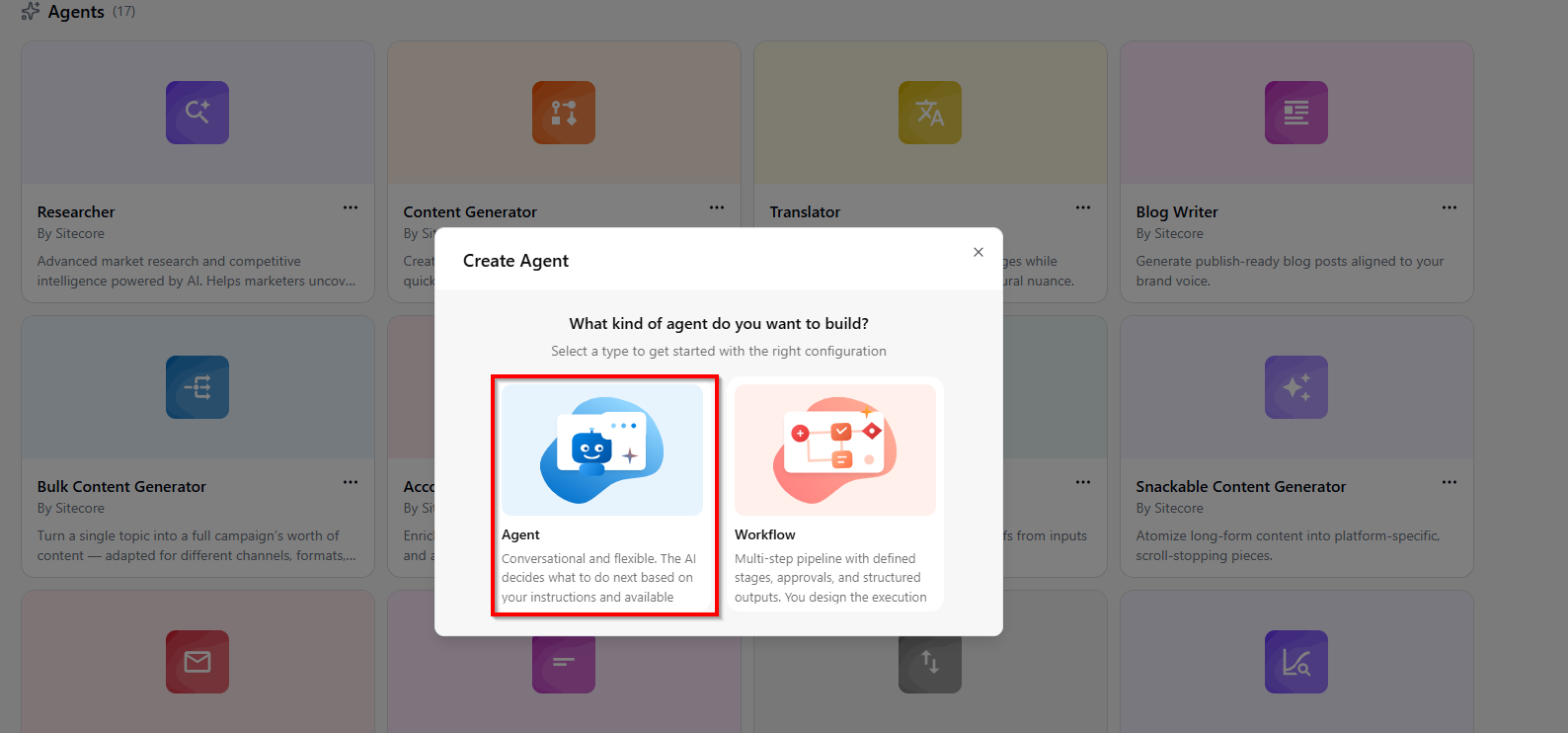 - You have more flexibility to create and customize your own agents. You can define and configure agents and workflows to match your needs. Below is a summary verbatim from Sitecore release notes:
