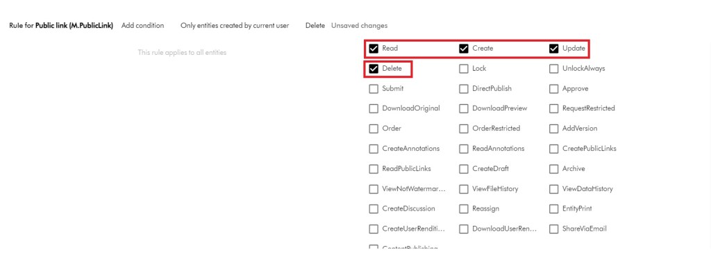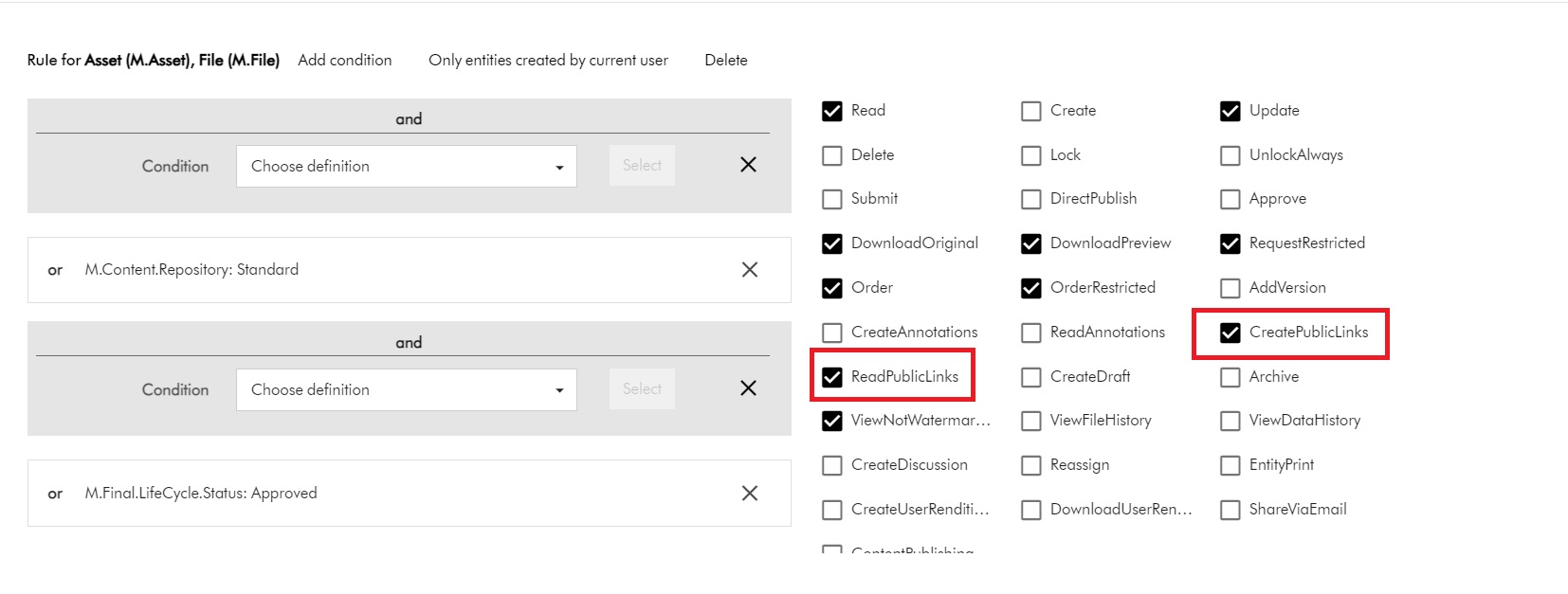 Content Hub permissions and security model is underpinned by the user group policies model, whereby Content Hub users can perform actions based on their access rights. The official docs provides clear definition of the anatomy and architecture of the user group policies. For example, a user group policy consists of one or more rules, with each rule determining the conditions under which group members have permissions to do something.